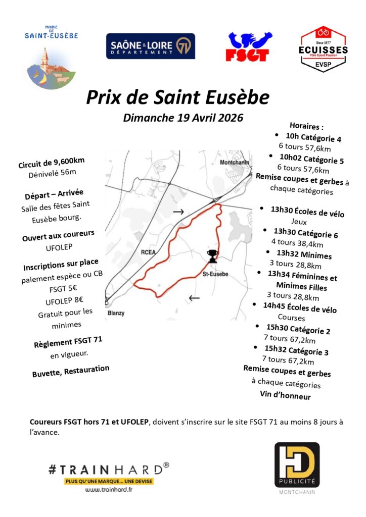Par Giovanni31 mars 20260 commentaireCourse Le Club EVSP organise le dimanche 19 Avril 2026 le « Prix de St Eusèbe » sur la journée.